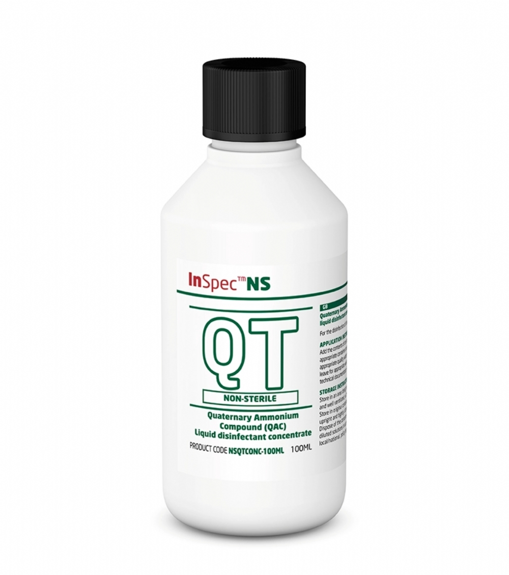 InSpec QT Biocide Solution & Wipes (Non-Sterile) are broad-spectrum, quaternary ammonium compound (QAC) disinfectants developed for routine surface disinfection in cleanroom, pharmaceutical, laboratory and other controlled environments where sterility is not required but consistent contamination control is essential.
